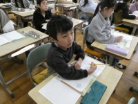 先生がどこかの位の玉いくつか上げます。よく見ていて、「3000」などと答えます。一瞬なので集中力が必要です。友達よりも早く答えようと一生懸命です。
