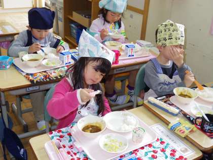 先生にやり方を教わって、自分たちで配膳、片付けができました。