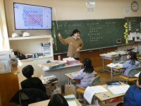 図工で画用紙を折って、動物や山、車や家を作りました。みんなの作品を並べて、わくわくランドを完成させました。もっと作りたい、ミニも作りたいといっぱい作りました。満足そうな顔、見てください。