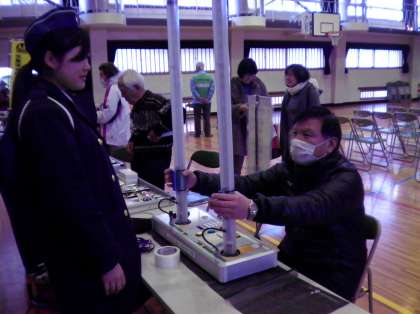 体育館では、俊敏性などをはかるコーナーが設けられています。