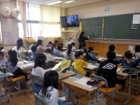 連合自治会長の渡邉修司さんにお話をしていただきました。主に地区センター、昔の大岡小学校について話を聞きました。昔は1つのクラスに子どもが50人以上いると聞いて、子どもたちは驚いていました。渡邉修司さん、ありがとうございました。