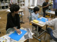 節分にちなみ、鬼のお面を作りました。一人一人退治したい心の鬼をみんなの前で発表し、豆まきをしました。その後、みんなで記念撮影をしていたところ、赤鬼さんが教室に来てみんなびっくりしました。