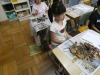 昨日刷った版画をカレンダーの台紙にはって、完成です。ペアで協力して台紙に貼っていました。どれも素敵なカレンダーとなりました。ご家庭でお使いください。