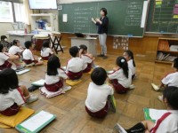 子供たちに馴染みがある絵描きうたは、ドラえもんの歌のようです。今日は昔懐かしい絵描きうたを学びました。できあがった絵に大笑いしてしまった一コマもありました。