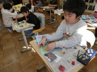 水の周りの生き物、陸地の生き物に分けて、どこに置こうか相談して進めています。