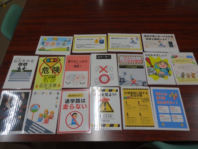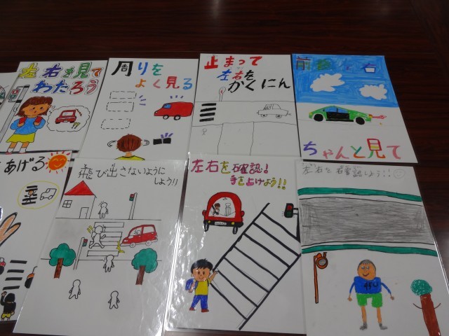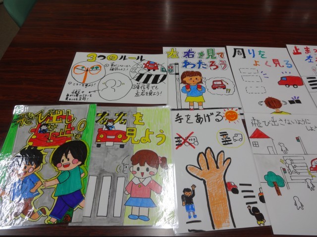 事後学習で、自分たちができる交通安全活動として、ポスターを作成することを考えました。