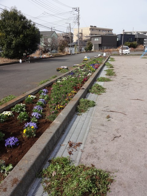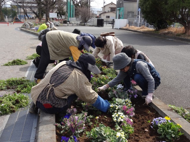 卒業式に向けて、花壇ボランティアの皆様で、大岡小花壇の手入れを行ってくださいました。