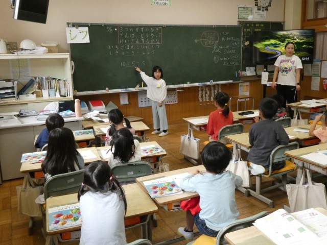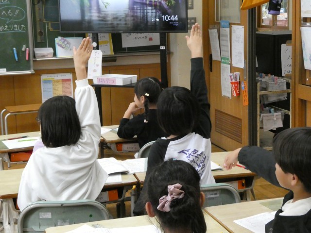 2年生の教室では、国語の音読や算数の授業を行っています。