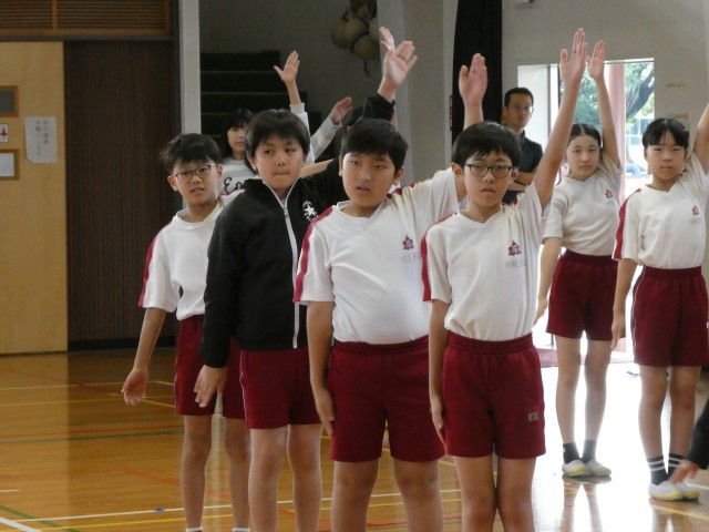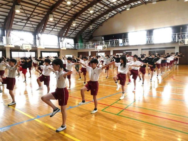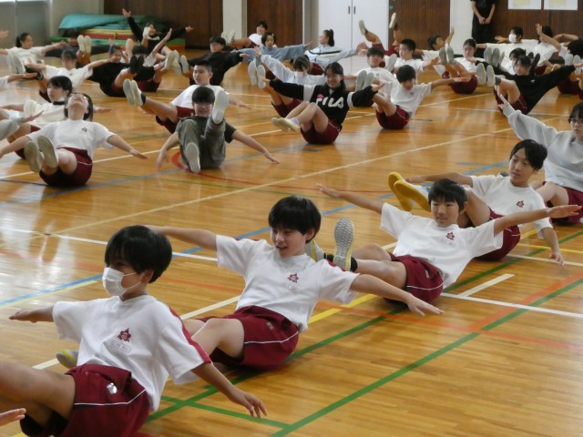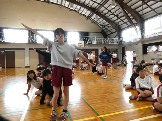 今日のメインは「千手観音」きれいに見せられるように練習します。音楽とみんなの動きが合うとかっこいい!