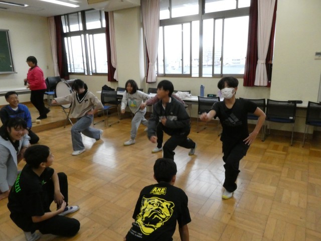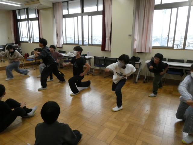 今日のメインは「千手観音」きれいに見せられるように練習します。音楽とみんなの動きが合うとかっこいい!