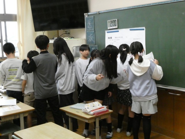 昼休みに代表委員会が開かれました。3年生以上の各学級の代表者と委員会の委員長が集まり、スローガンについて前期の達成状況を振り返り、後期にやってみたいことを話し合いました。