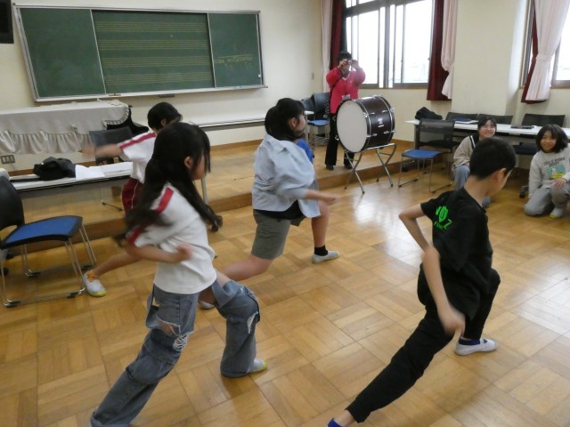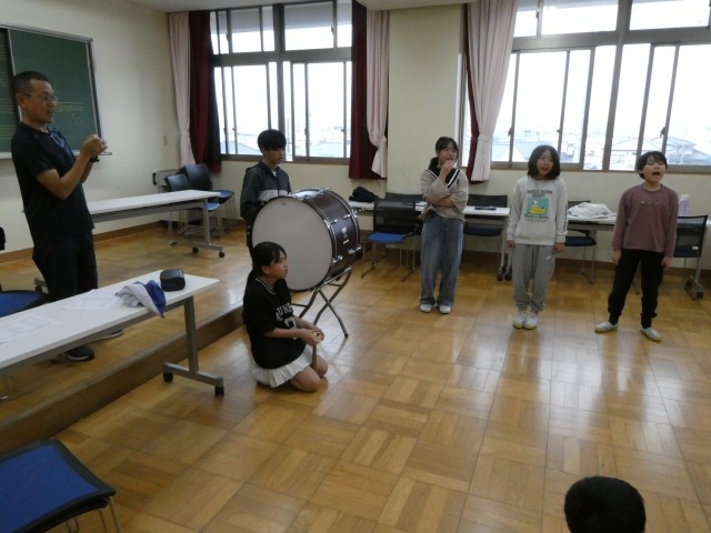 先生のタンバリンのリズムに合わせて声を出していきます。