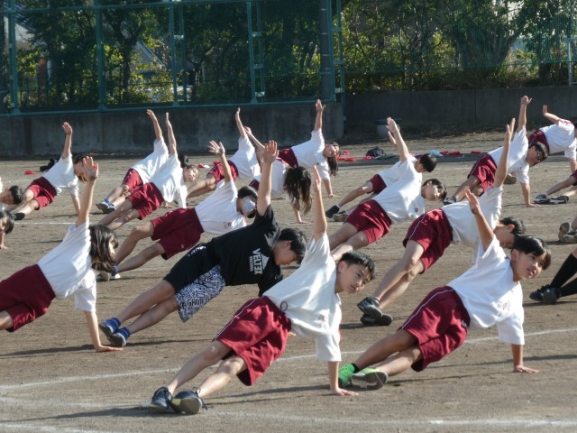 20分休み、応援団がグラウンドで練習しています。太鼓の音と大きな声、運動会が近づいてきました。
