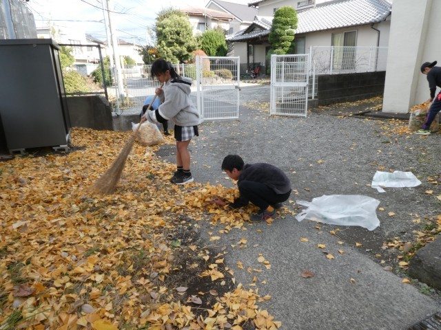 5・6年生の有志が、落ち葉集めをしてくれました。力を合わせて、ごみ袋30袋、ずいぶんきれいになりました。
