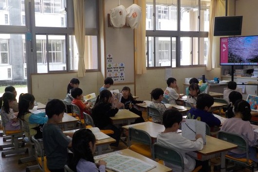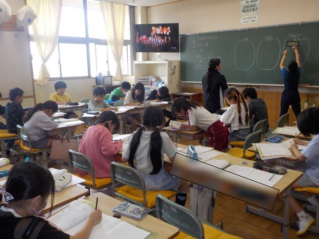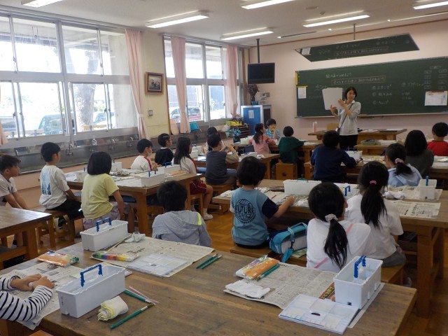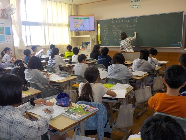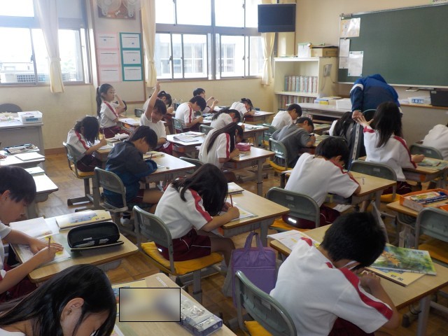 今日の3時間目の様子です。4年1組は理科、2組は算数、3組は図工の時間でした。友達の発表を聞いたり、先生の説明を聞いたり、関わりながら学んでいました。5年1組は社会、2組は理科の時間です。難しいことが出てきても、みんなで協力して考えて解決へと向かっていました。6年1組は社会の学習で、国民の意見をどのように反映させるのか、みんなで考えていました。2組は英語の時間で、違う国の言い方を知ったり、出身地の言い方に慣れ親しんだりしていました。