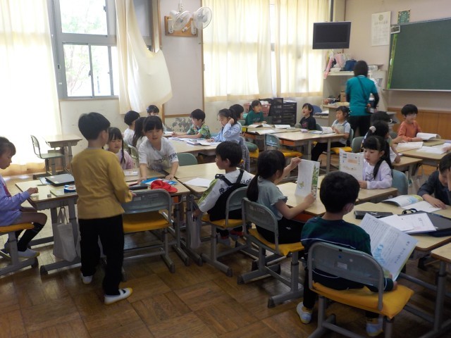 1年生は教室で初めてクーピーを使ったり、並び方の練習をしたり、頑張っていました。6組・7組さんは自己紹介カードを作っていました。2年生は自己紹介をしたり、クイズをしたり、お互いのことを知る活動を楽しんでいました。3年生はドリルを使って漢字の練習をしたり、「担任の先生クイズ」をしたりしていました。4年生は詩の学習をしていました。