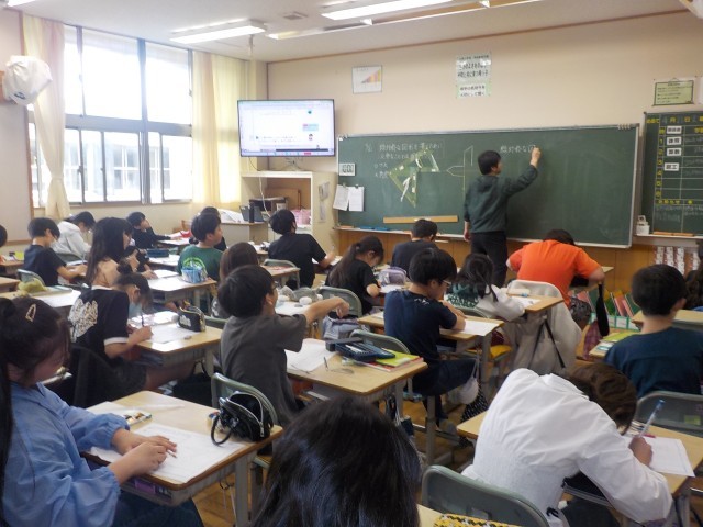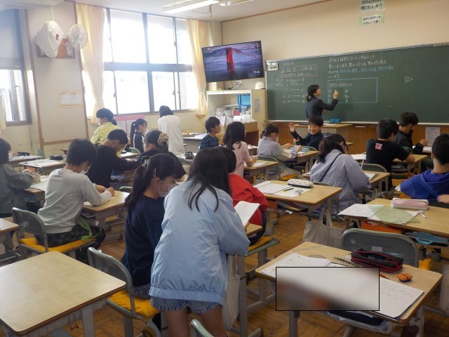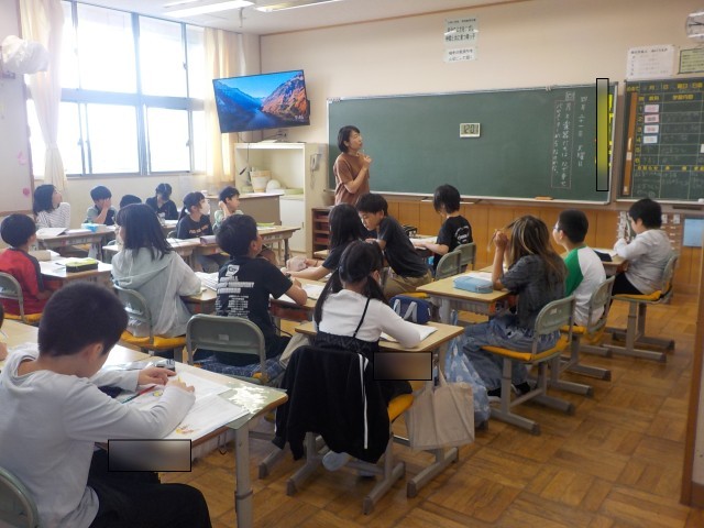 今日の3時間目の様子です。4年1組は理科、2組は算数、3組は図工の時間でした。友達の発表を聞いたり、先生の説明を聞いたり、関わりながら学んでいました。5年1組は社会、2組は理科の時間です。難しいことが出てきても、みんなで協力して考えて解決へと向かっていました。6年1組は社会の学習で、国民の意見をどのように反映させるのか、みんなで考えていました。2組は英語の時間で、違う国の言い方を知ったり、出身地の言い方に慣れ親しんだりしていました。