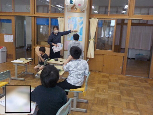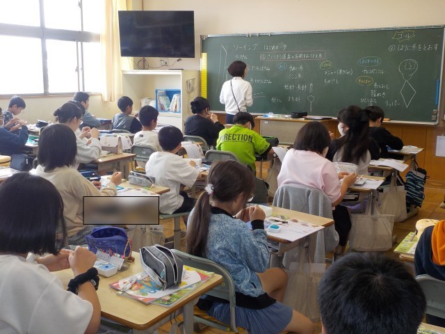 5年生は「ALSOK」の方に、安全なまちについて教えていただいたり、家庭科の授業で針に糸を通す練習をしていました。6年生は算数で、線対称や点対称の形について学んでいました。