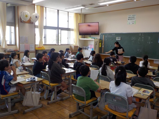 2時間目の授業の様子です。高学年になると、4年生は友達と考えを交流しながら、国語の授業を受けていました。5年生は、黒板のものをしっかりと書き写しながら、授業に取り組んでいました。6年生は家庭科の授業で、自分の時間の使い方について振り返っていました。