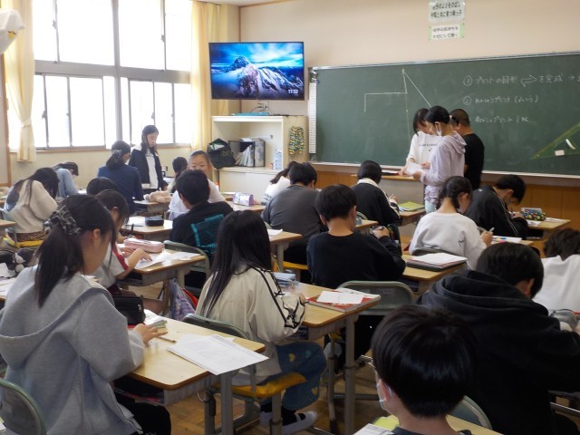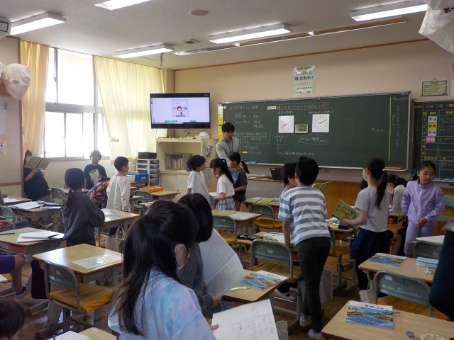 今日の3時間目の様子です。4年1組は理科、2組は算数、3組は図工の時間でした。友達の発表を聞いたり、先生の説明を聞いたり、関わりながら学んでいました。5年1組は社会、2組は理科の時間です。難しいことが出てきても、みんなで協力して考えて解決へと向かっていました。6年1組は社会の学習で、国民の意見をどのように反映させるのか、みんなで考えていました。2組は英語の時間で、違う国の言い方を知ったり、出身地の言い方に慣れ親しんだりしていました。