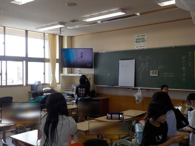 1年生は教室で初めてクーピーを使ったり、並び方の練習をしたり、頑張っていました。6組・7組さんは自己紹介カードを作っていました。2年生は自己紹介をしたり、クイズをしたり、お互いのことを知る活動を楽しんでいました。3年生はドリルを使って漢字の練習をしたり、「担任の先生クイズ」をしたりしていました。4年生は詩の学習をしていました。