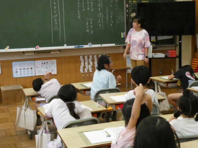 「サラダでげんき」という物語の学習に入りました。題名からどんなお話か想像しました。それぞれお家でどんなサラダを食べているのかお話ししていました。お話を読んだ後、面白かったところを話し合いました。