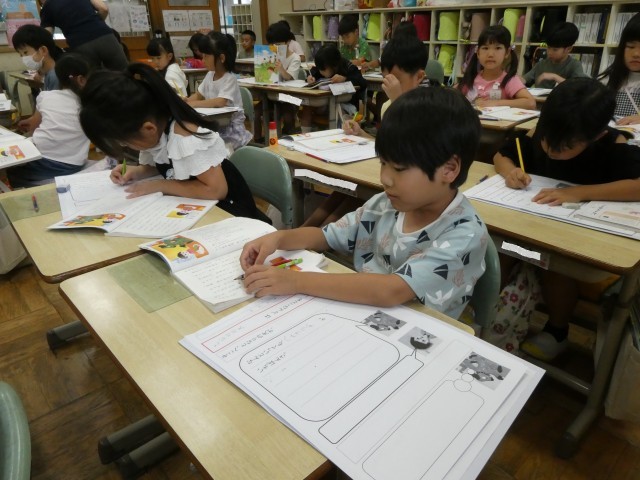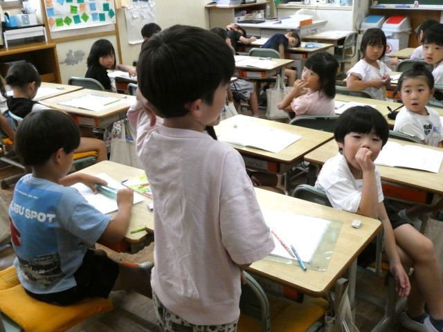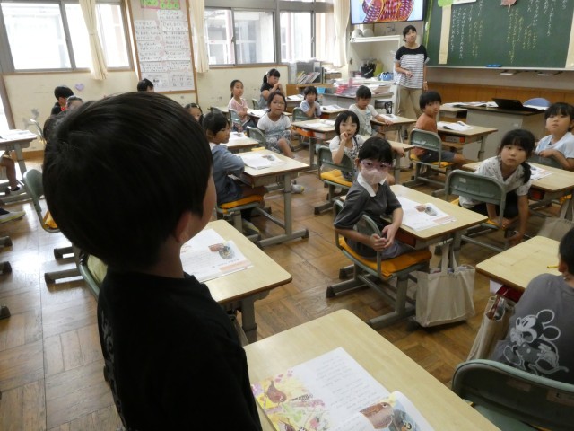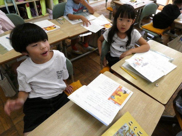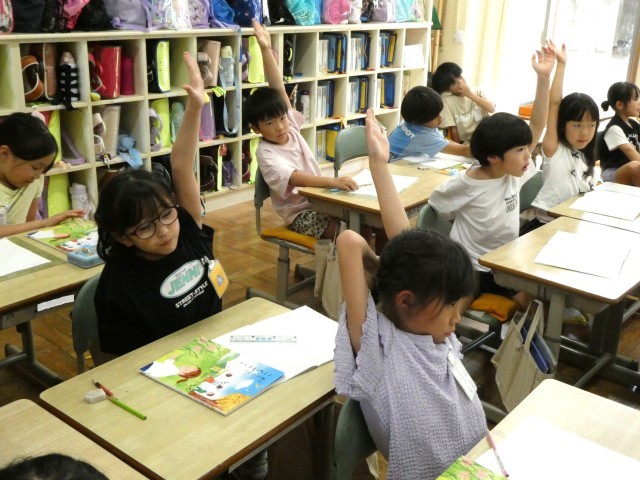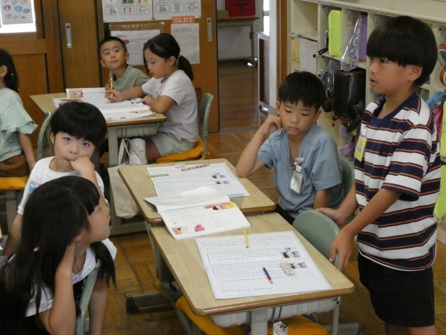 生き物を飼った経験を伝え合っていました。友達が話しているときの聴く姿勢がすばらしい1年生です。