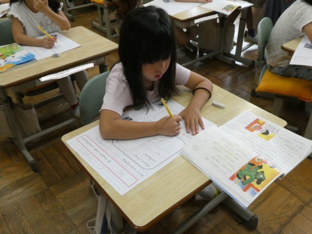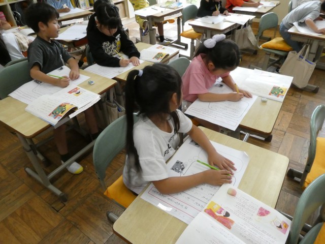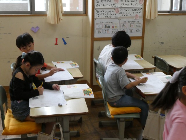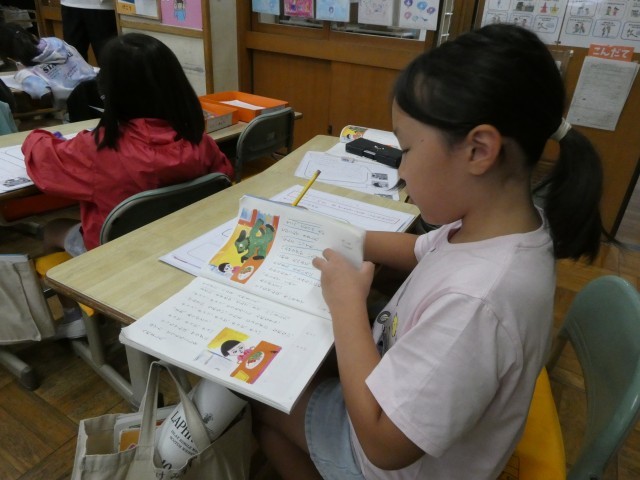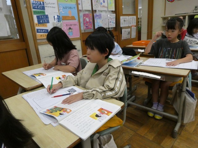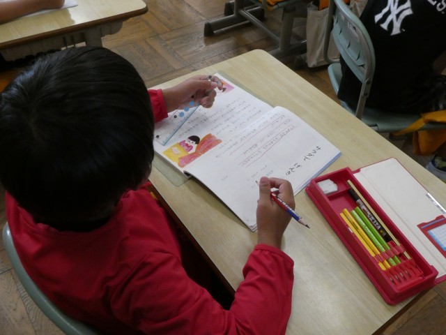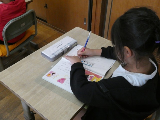 入学して半年、1年生はもう漢字を学習しています。書き取りノートに丁寧に習った漢字を書いていました。