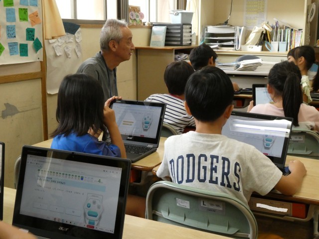 1年生もAIドリルを使いこなしています。「できる?」と尋ねると、「簡単だよ! ほら100点」と教えてくれました。