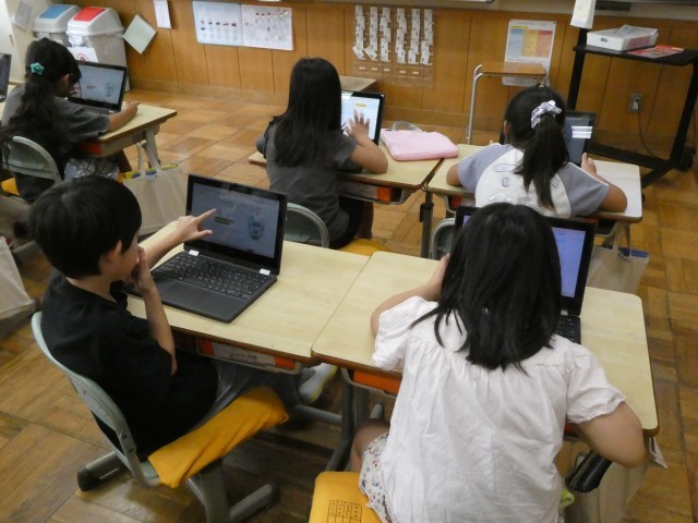 熱中症の心配があるので、エアコンの効いた教室で体育の授業をしました。