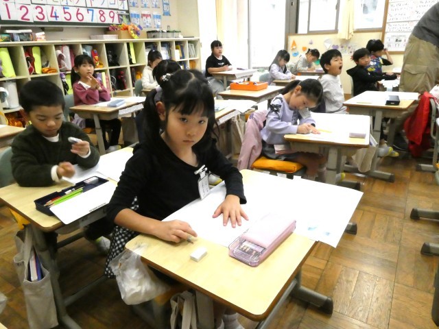「二わのことり」というお話を読んで、友達と仲良くするにはどんな心が大切なのか考えました。入学して半年、1年生の成長を感じました。友達が話すときは、自然にみんなの目がその子に集まります。聴く態度にやさしさが表れています。
