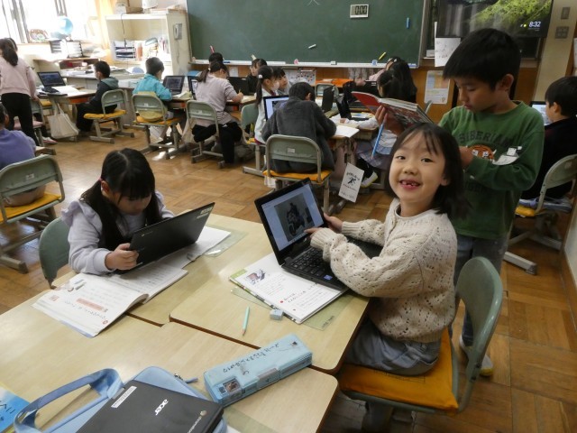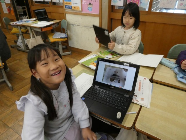 1年生の教室は空き真っ盛り! どんぐりや落ち葉を使って、楽しい遊びを制作中です。