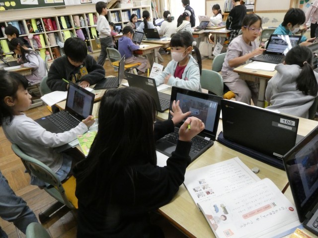 友達と仲良くするにはどうすればいいのかな? お話をもとに考えました。グループで話し合ったことをみんなに伝えています。