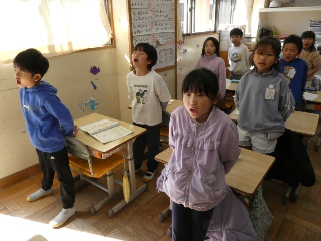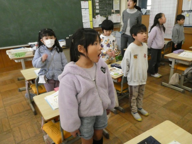 「おとうとねずみのチロ」という物語を上手に音読しています。みんなで声をそろえてチロの様子も読み方で表していました。