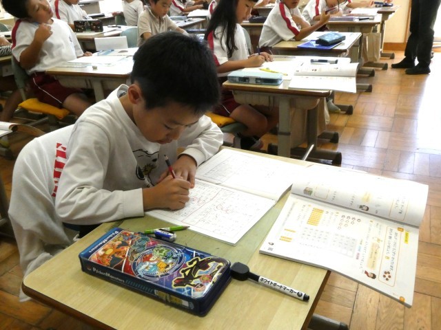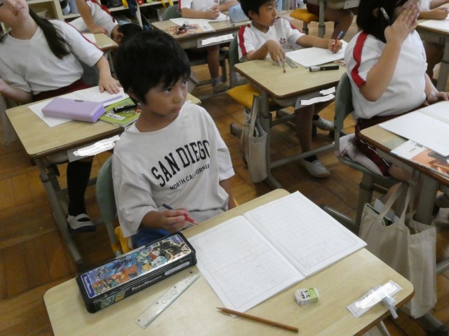 どの子も姿勢を正して、ゆっくり鉛筆を進めています。今日は、「そり」と「まがり」に気を付けて書きました。