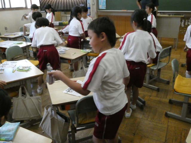 昨日の校区探検で訪ねたお店で見たり聞いたりしてきたことを付箋に書き出して整理しています。自分たちで探検に出かけた2年生、ちょっと頼もしくなったようです。