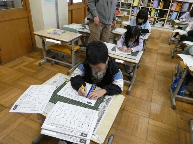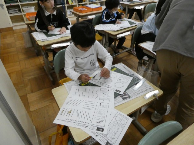 どの子も姿勢を正して、ゆっくり鉛筆を進めています。今日は、「そり」と「まがり」に気を付けて書きました。