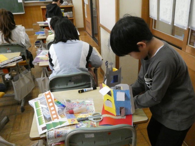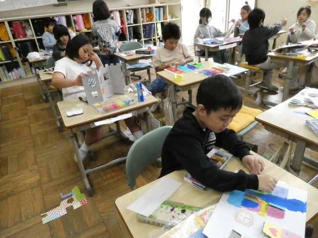 カッターナイフの使い方が少しずつ上手になってきました。自分の好きな形の窓を切り抜いて、顔をのぞかせて見せてくれました。
