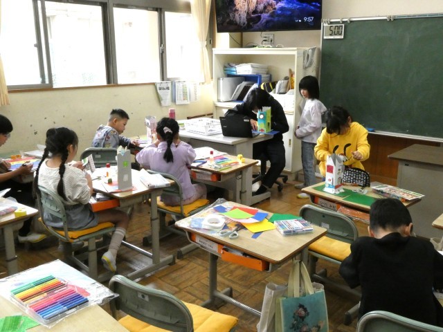 今週、校区のお店を見学に行くので、行くお店ごとに集合して計画を立てました。自分たちで歩いて見学に行くので、わくわくです。