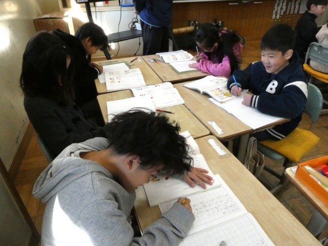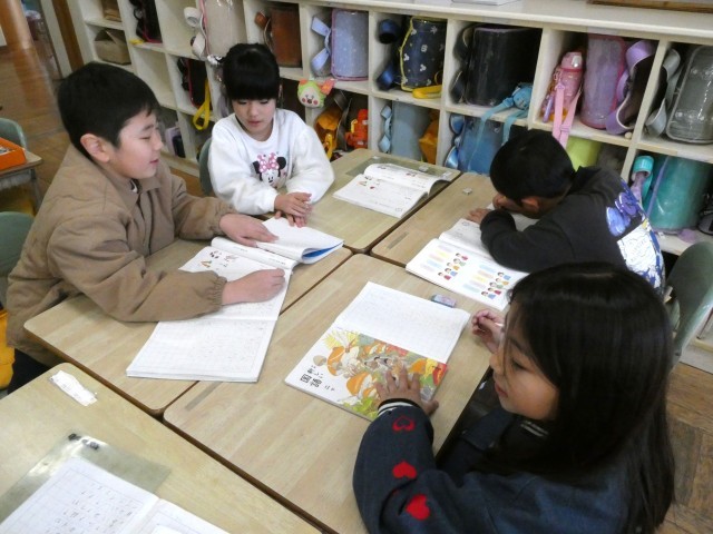 もうすぐ2年生になる1年生に、「2年生ってこんなことするんだよ」と教えてあげるカルタを作成中です。1年生がわくわくするような文を作って、楽しい絵を描いて・・・大忙しです。