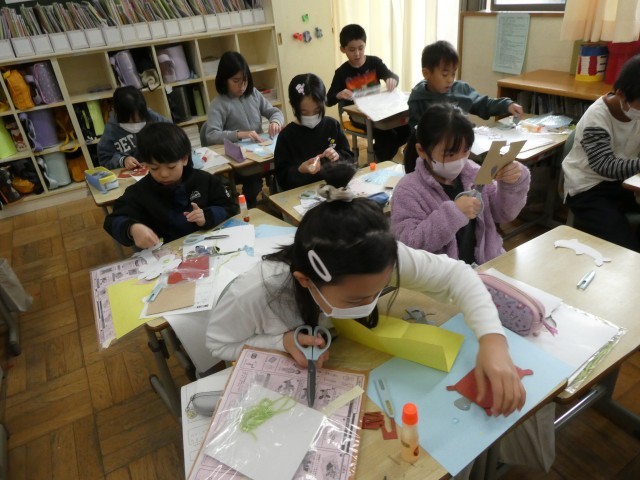 「道具のひみつを調べよう」箸、はさみ、防災頭巾・・・よく使う道具のひみつを本やインターネットで調べてまとめる学習です。