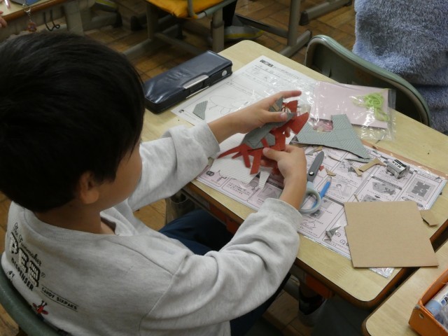 紙版画の学習に入りました。いろいろな紙の質感を確かめながら、インクを付けたらどんな模様になるかと考えて、版画のデザインを決めていきます。