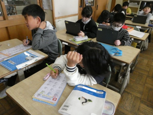 教科書の問題、計算ドリル、AIドリル、まだ終わっていないものに頑張って取り組んでいます。やることはしっかり終わらせて、すっきり胸を張って4年生になろう!