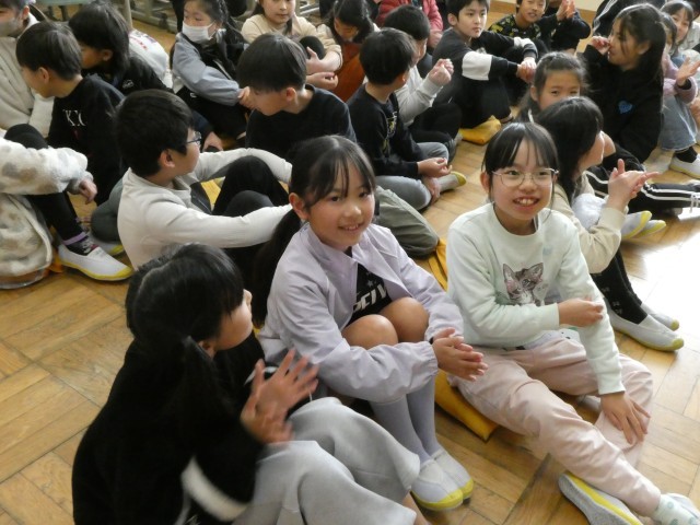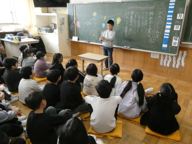 自分たちで計画したお楽しみ会。「出し物」では、個人やグループでクイズやマジックを披露しました。