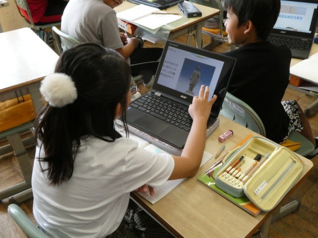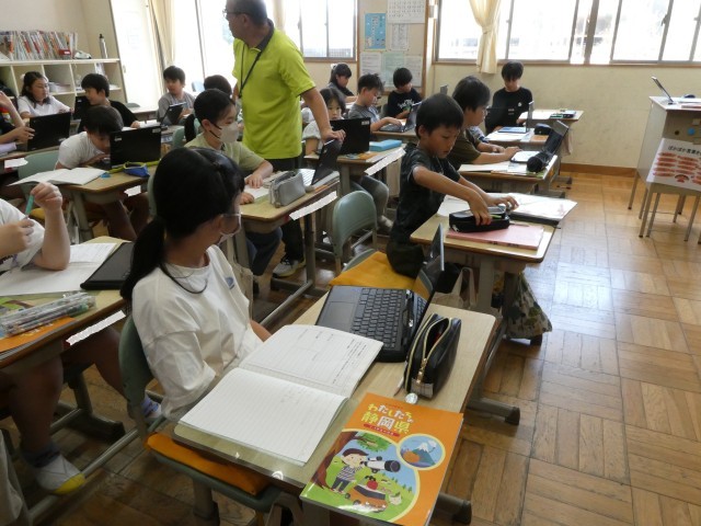 地域の伝統行事について調べている4年生、三島で生まれ育った先生が三嶋大社のお祭りにどう関わってきたかを話している動画を見ました。自分は、地域の伝統を守るためにどんなことができるだろう?