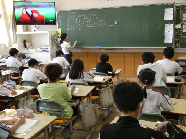 4年生算数「倍の計算」では、イルカのとんだ高さと体調をくらべてみることに取り組みました。