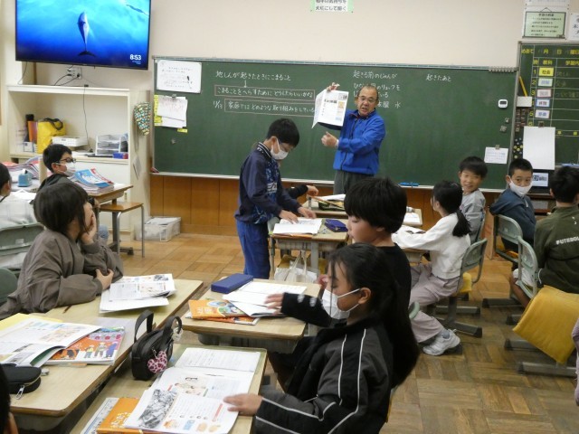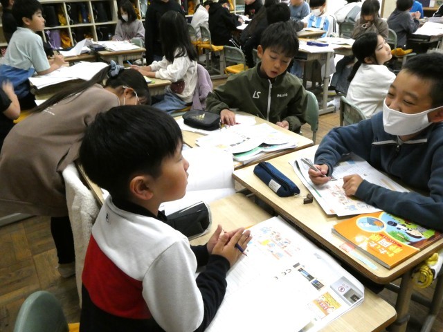 4年生社会科の授業では、自然災害のうち、地震が起きたときどんなことが困るかグループで話し合いました。