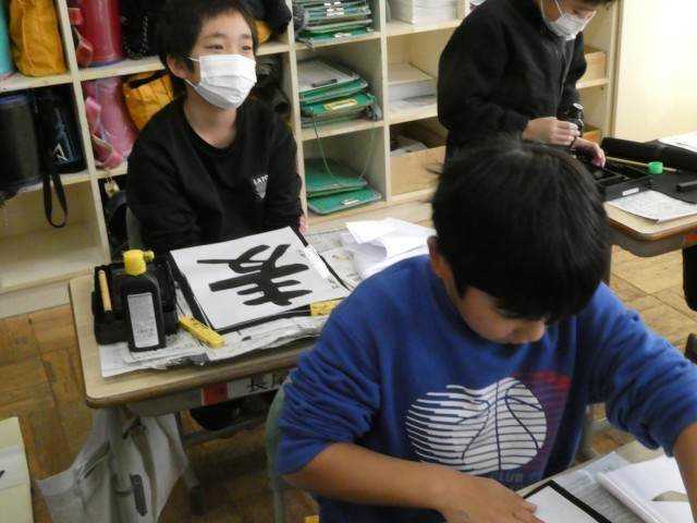 12月18日(木) 4年生 書き初め練習