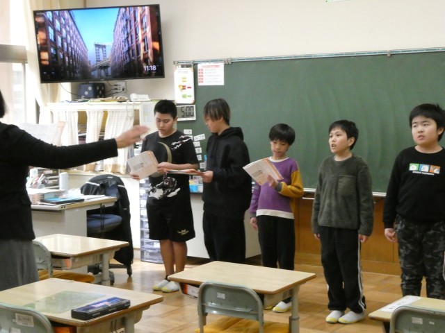 6組では、「自分のいいところってどこだろう?」とカードを使って考えてみました。7組は国語、大きな声で詩の朗読をしたり絵本を読んだりしていました。