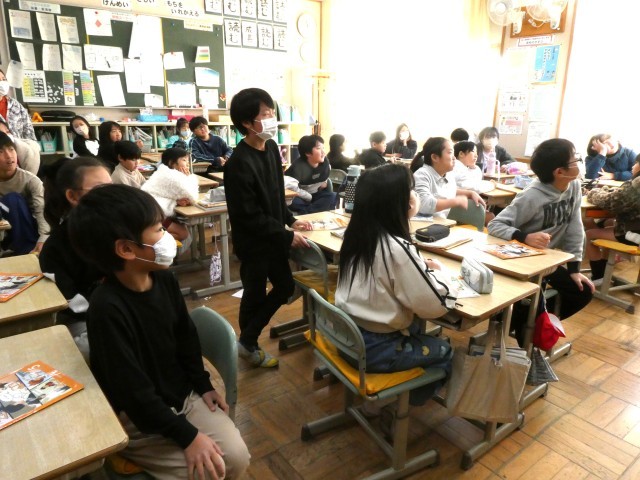 今日は、顔や腕などを中心に彫りました。安全見守りボランティアの保護者の方が来てくださっているので、安心して彫刻刀を使った学習を進めることができます。